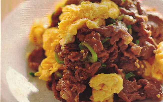 卵と牛肉のオイスターソース炒め